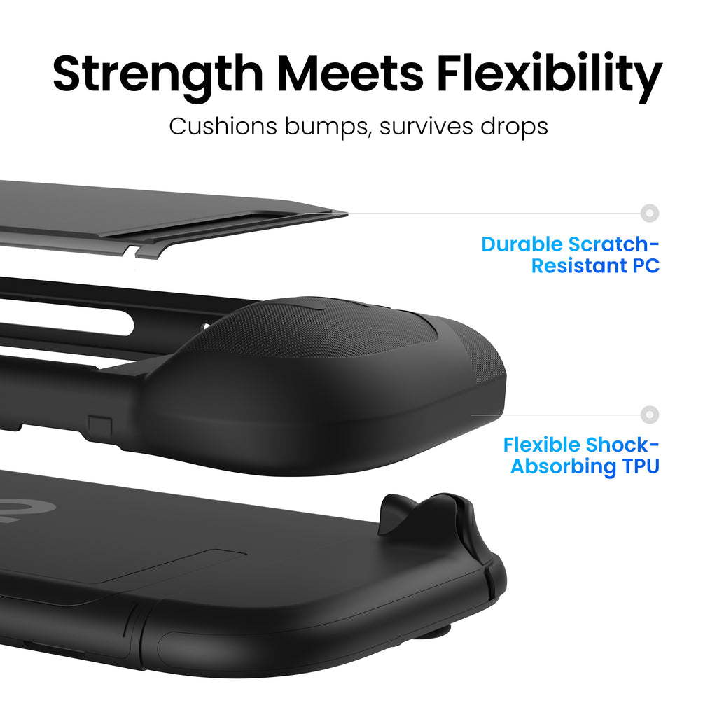 Military-Level Drop Protection:Features scratch-resistant PC back, shock-absorbent TPU bumpers, and raised edges to protect both the console and screen in drop tests, letting you conquer drops, bumps, and shocks with confidence
