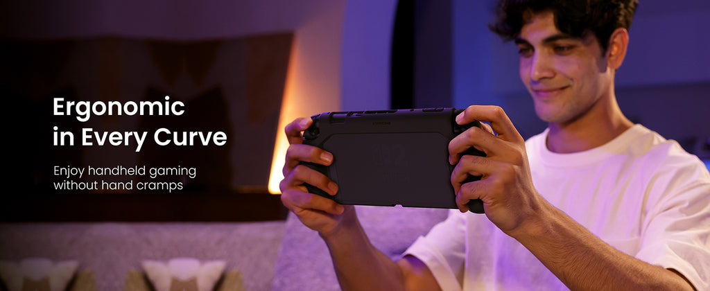 Ergonomic Grip for All Hands:Smooth curves and anti-slip texture ensure a secure, comfortable hold for all hand sizes, reducing hand fatigue during long play. Ideal for handheld mode, it keeps your focus sharp during quick or extended gaming sessions